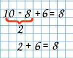 Ставь ручку на число 10 и шагни влево на 8 шагов.