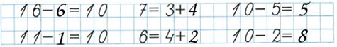 | 16 - __ = 10 | 7 = 3 +__ | 10 - 5 = |