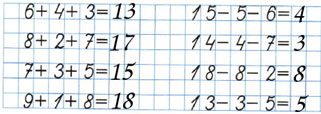 | 9 + 1 + 8 | 13 - 3 - 5 |