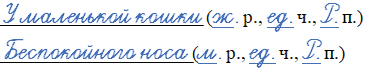 Просклоняйте каждое слово в словосочетаниях молодая сосна и голубой песец. Выделите в словах окончания.