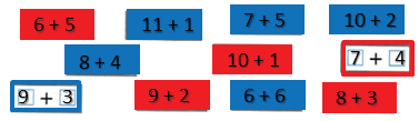 2) Запиши на свободных карточках новые суммы с ответами 11 и 12.