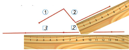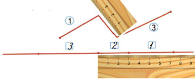 Определи на глаз и запиши в окошко номер каждого звена ломаной, отложенного на пря­мой. Проверь измерением.