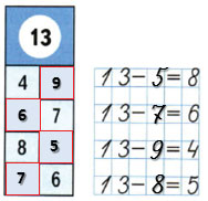 В нашем справочнике повтори тему про табличное сложение.Ты можешь пользоваться таблицей сложения чисел 13 и 14.