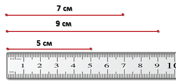 Начерти 2 отрезка: один на 2 см длиннее данного, а другой на 2 см короче данного.