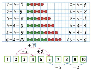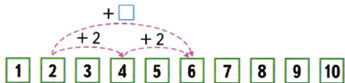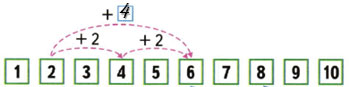 Значит, к числу 2 прибавляем сначала 2 и попадаем на цифру 4, а потом прибавляем еще 2 и попадаем на цифру 6.
