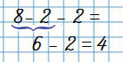 Значит, из числа 10 вычитаем сначала 2 и попадаем на цифру 8, а потом вычитаем еще 2 и попадаем на цифру 6.