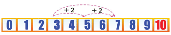 Значит, к числу 3 прибавляем сначала 2 и попадаем на цифру 5, а потом прибавляем еще 2 и попадаем на цифру 7.