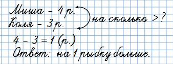 На сколько больше? Сравниваем числа 4 и 3. Вычитание. Знак минус.