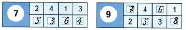 В пустую клеточку добавь число, которое нужно прибавить, чтобы получить 7 и 9.