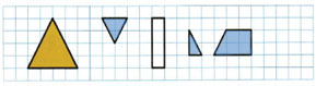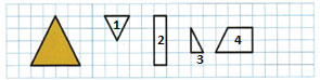 Раскрась 3 фигуры, из которых можно соста­вить треугольник, который начерчен слева.
