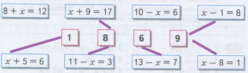 х + 9 = 17 х = 17 - 9 х = 8 |