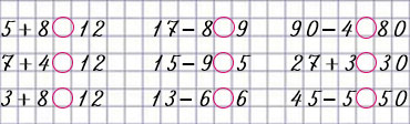 | 58 + 7 = 65 | 63 – 5 = 58 | 80 – 8 = 72 |