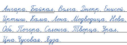 Поставьте имена собственные в алфавитном порядке. Спишите. Подчеркните название озера.