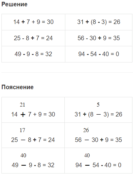 14. Поставь знаки действий "+", "-" так, чтобы получились верные равенства.