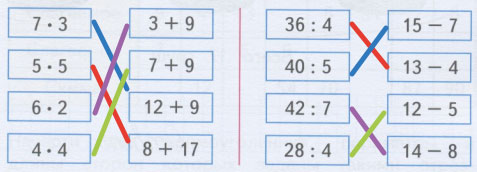 1. Соедини линией карточки, на которых записаны выражения с равными значениями.