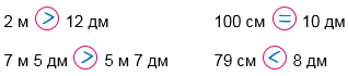 7 м 5 дм > 5 м 7 дм