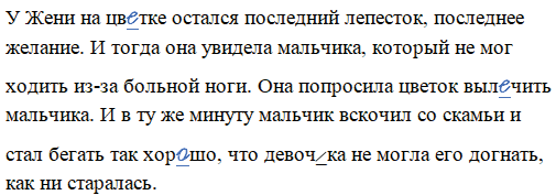 Прочитайте текст В. Катаева. Вставьте пропущенные буквы. Обсудите, какое желание девочки было самым добрым.