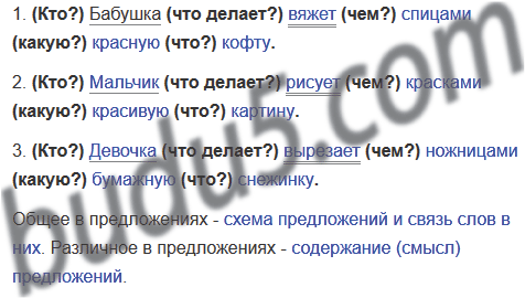 Общее в предложениях - схема предложений и связь слов в них. Различное в предложениях - содержание (смысл) предложений.