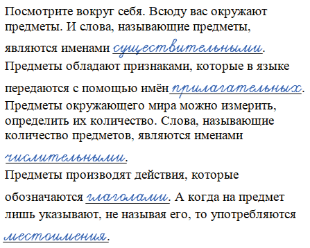 Посмотрите вокруг себя. Всюду вас окружают предметы. И слова, называющие предметы, являются именами существительными.
