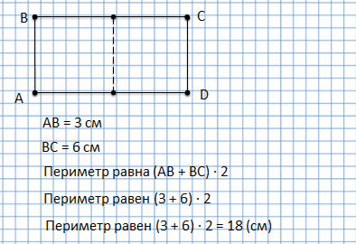2) Найди периметр прямоугольника, составленного из двух квадратов, таких, как в задании 1).