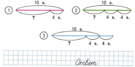 Выбери схематический чертёж к задаче и раскрась его номер. Реши задачу.