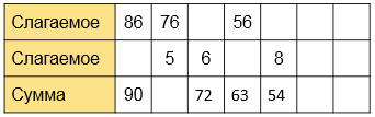 При заполнении таблицы помним, чтобы найти неизвестное слагаемое, нужно из суммы вычесть известное слагаемое.