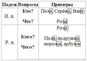 | Падеж | Вопросы | Примеры |