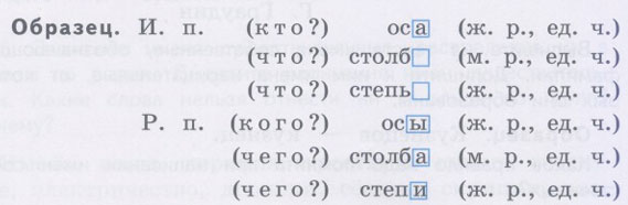 Просклоняйте (измените по падежам) имена существительные оса, столб, степь. Используйте таблицу из упражнения 11. Определите род и число каждого имени существительного. Запишите слова по образцу.