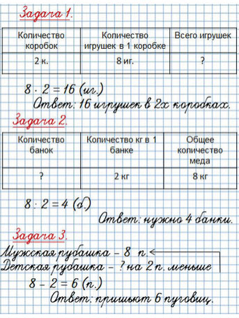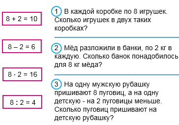 Соедини линией кружок с номером задачи и рамку, в которой записано её решение.