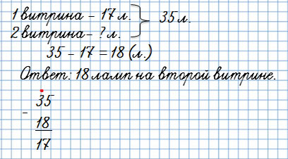 Две витрины магазина освещают 35 лампочек. В одной витрине 17 лампочек. Сколько лампочек в другой витрине?