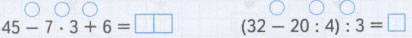 45 - 7 • 3 + 6 = 30 1) 7 • 3 = 21 2) 45 - 21 = 24 3) 24 + 6 = 30 |