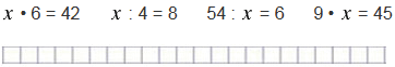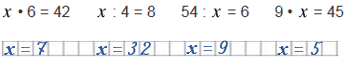 х • 6 = 42 х = 42 : 6 х = 7 |