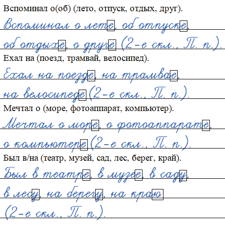 Вспоминал о(об) (лето, отпуск, отдых, друг). ____