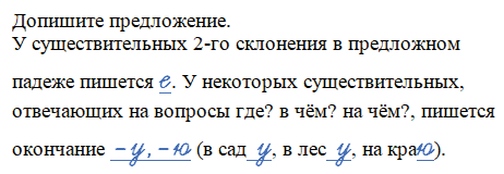 У существительных 2-го склонения в предложном падеже пишется __. У некоторых существительных, отвечающих на вопросы где? в чём? на чём?, пишется окончание __ (в сад_, в лес_, на кра_).