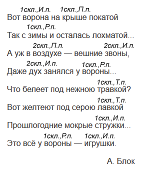 Спишите стихотворные строки. Найдите в них имена существительные, определите их склонение и падеж.