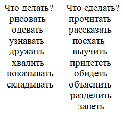 Р..совать, проч..тать, рас..казать, п..ехать, выучить, прилететь, од..вать, узн..вать, друж..ть, обидеть, хв..лить, об..яснить, п..казывать, разд..лить, складывать, запеть.