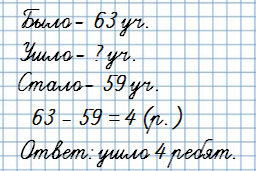 23. В начале года в хоре было 63 ученика, а к концу года их стало 59. Сколько ребят ушло из хора?