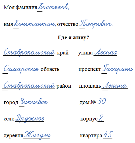 Прочитайте. Впишите пропущенные имена собственные и имена числительные (цифрой). Подчеркните заглавную букву в собственных именах существительных.
