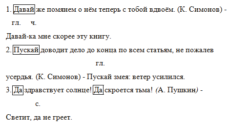 2. Пускай довод..т дело (до)конца по всем стат..ям, (не)пож..лев усердья. (К. Симонов) — Пускай змея: ветер усилился.