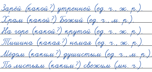 Прочитайте тексты. Запишите словосочетания из имён существительных и имён прилагательных с вопросами. Укажите число и, если можно, род имён прилагательных.