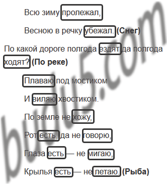 Выберите одну из загадок. Спишите её. Обведите глаголы.
