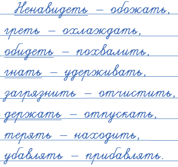 Подберите к глаголам антонимы из слов для выбора. Запишите глаголы парами. Подчеркните глаголы-исключения.