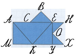 Равнобедренные треугольники: АМК, АКЕ, КУО, УОХ, ЕОН, СВЕ.