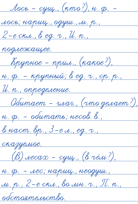 Выпишите из текста "Лось" выделенные слова и разберите каждое из них как часть речи.