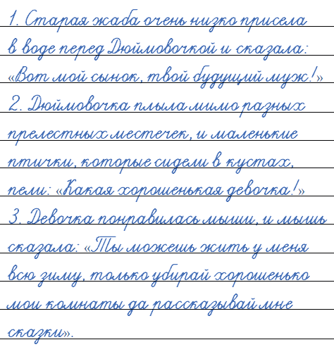 2. Дюймовочка плыла мимо разных прелес_ных местечек, и маленькие птич_ки, которые сидели в кустах, пели (К/к)акая хорошенькая девоч_ка!