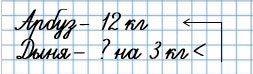 2) Масса арбуза 12 кг, а масса дыни на 3 кг меньше. Найди массу дыни.