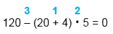 120 - (20 + 4) • 5 = 0