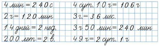 1 мин = 60 с, значит 4 мин = 4 • 60 = 240 с.