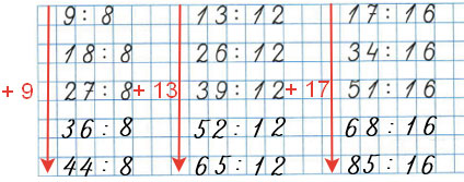 112. Найди правило, по которому составлены частные в каждом столбике, и запиши в них ещё по 2 выражения.