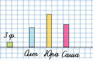 Используя решение задачи, построй на клетчатой бумаге диаграмму количества фонариков, сделанных каждым мальчиков. Масштаб выбери самостоятельно.